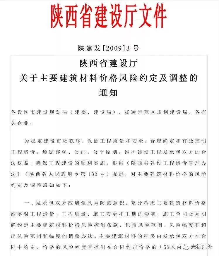 一、從2021年春節(jié)后受國際國內市場多因素影響,鋼材、銅等建筑材料價格波動較大,對建筑工程造成影響較大,2021年5月19日陜西省住房和城鄉(xiāng)建設廳發(fā)布:陜建發(fā)【2021】94號文件關于建筑材料價格風險管控指導意見的通知。